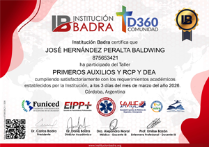 Institución Badra, junto con Comunidad D360, presentan el taller de Primeros Auxilios, RCP destinado a toda al público en general. Este taller tiene como objetivo consolidar estrategias de prevención y acción para enfrentar emergencias.